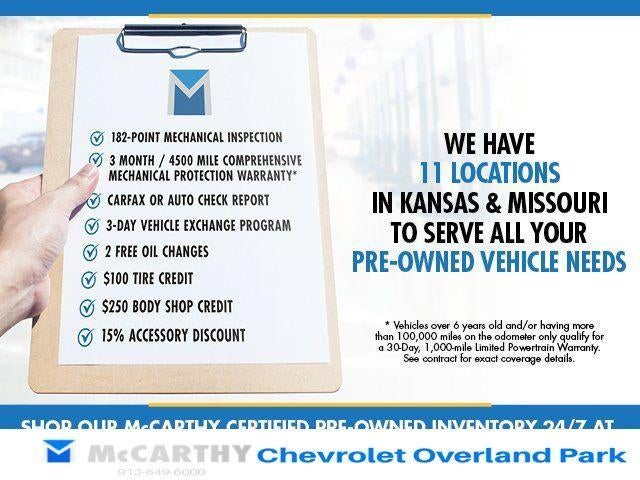 At McCarthy Chevrolet Overland Park, proudly serving the Kansas City Metropolitan Area since 1928, we make your used car shopping experience easy and hassle-free. Our competitive pricing brought you herenow discover how our dedicated team, quality vehicles, and exceptional customer service set us apart! With Kansas City's largest selection of pre-owned Chevrolet models and other makes, we have the perfect vehicle waiting for you. Looking to sell your car? Were Kansas Citys trusted car-buying center, offering top dollar for your tradeeven if you dont buy from us! McCarthy Chevrolet Overland Park is your one-stop shop for used cars, financing, expert service, parts, and collision repair. Used Car Disclosure & Disclaimer: All prices are plus a $699 administrative fee, addendum, and applicable taxes. Purchase prices do not include tax, title, license, and dealer-installed options, which are added to the vehicles price. Incentivized rates may affect incentives and/or pricing. All offers are subject to availability and may expire at month-end or the manufacturers specified date. Offers are not available with special financing, leases, or some other offers. Please check with your dealer or sales consultant for more details. Visit us at 9201 Metcalf Ave., Overland Park, KS 66212, or call us at (913) 649-6000 to schedule your test drive today. Dont waityour perfect pre-owned vehicle is waiting for you, and were excited to help you find it!