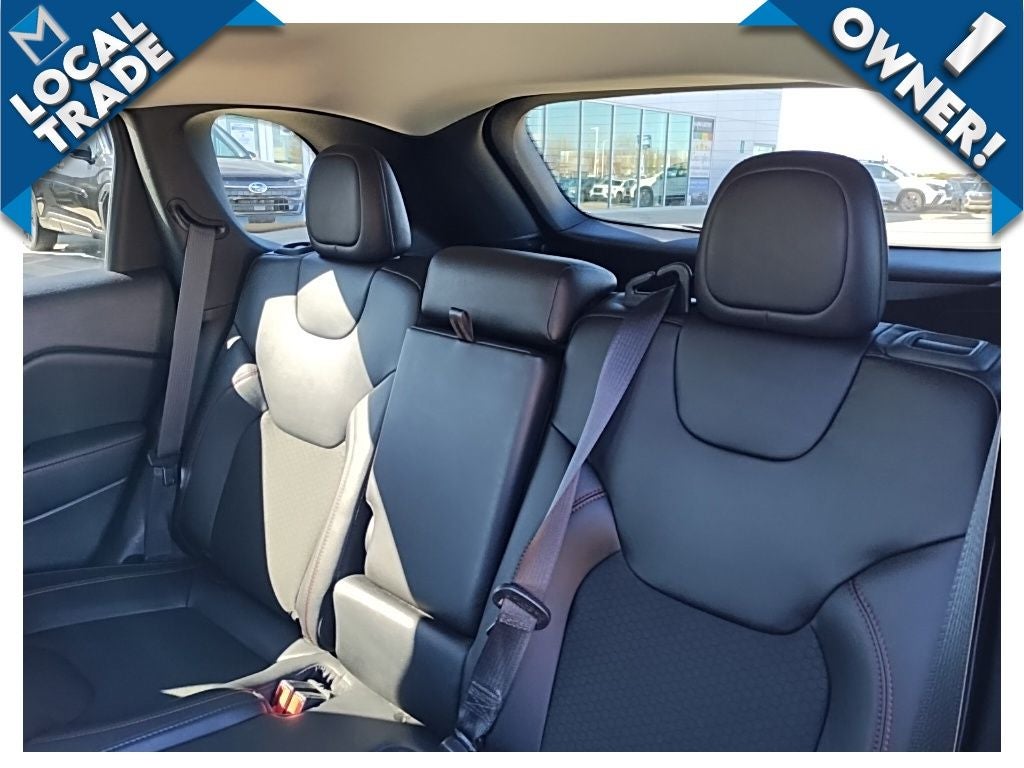 Safety is a major highlight, with features like **Blind Spot Monitoring, Lane Departure Warning with Lane Keep Assist, Forward Collision Mitigation, Rear Cross-Traffic Alert, Rear Parking Aid, multiple advanced airbags, traction control, and stability control**. Jeep built this Trailhawk to protect what matters most: your passengers and your peace of mind.