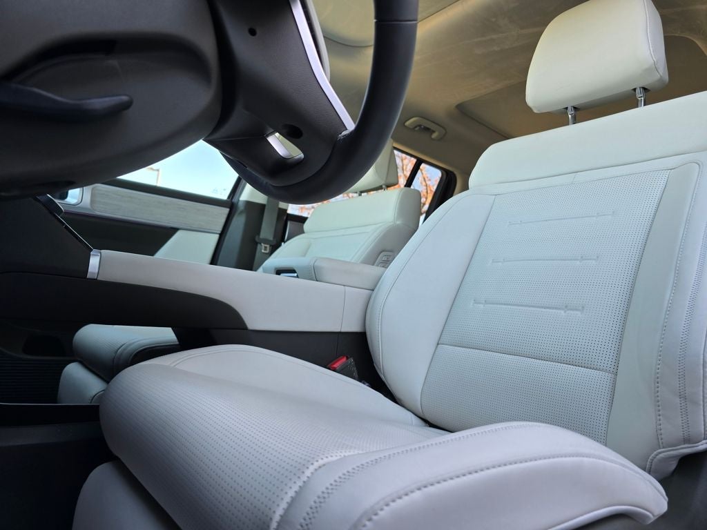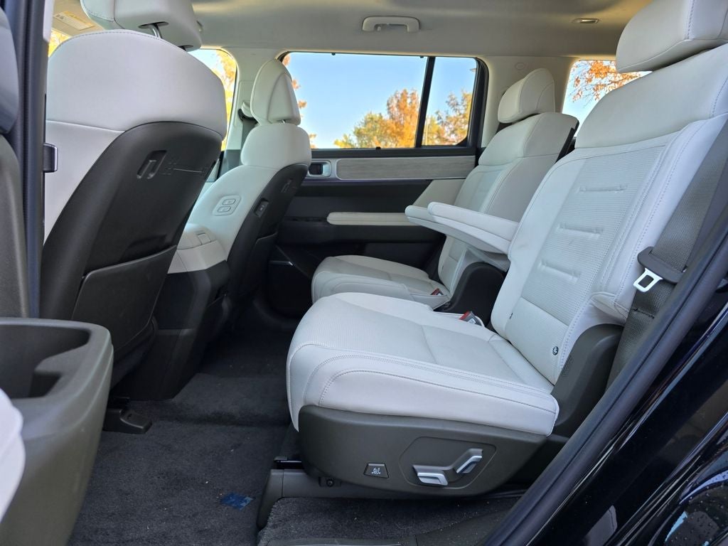 The 2025 Santa Fe marks a complete redesign featuring a boxier, adventure-inspired look and a roomier third-row layout. Its tailgate and cargo area were specifically engineered to create a more open, outdoor-friendly terrace feel ideal for modern families on the go.