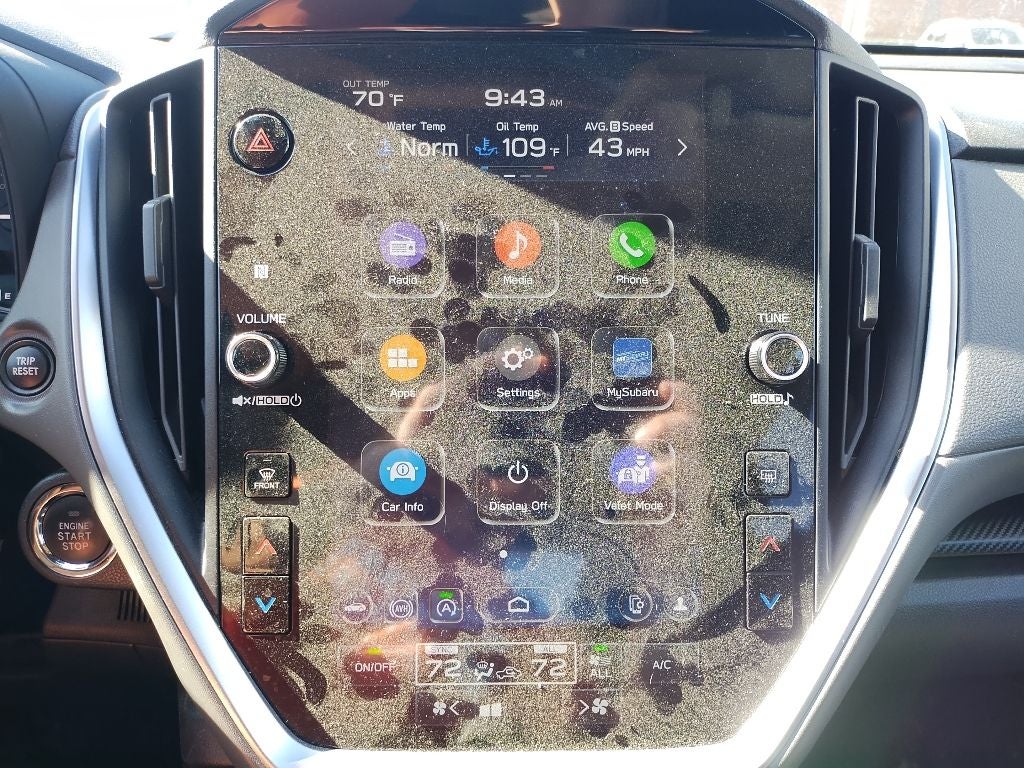 - Radio: Subaru 11.6" Multimedia Plus System -inc: AM/FM stereo, HD Radio, multi-touch gesture high resolution display screen, voice activated controls, Bluetooth® audio streaming and hands-free phone connectivity, Bluetooth® hands-free SMS text messaging connectivity, iPod control capability, SiriusXM w/360L (4 months free trial included/subscription required after), SiriusXM Travel Link (4 months free trial included/subscription required after), smartphone integration: Android Auto and Apple CarPlay w/full screen view and wireless connection, USB and Over The Air (OTA) audio system update, steering wheel audio system and Bluetooth® control switches, 6 speakers (2 dash panel tweeter, 2 front door and 2 rear door), illuminated 3.5mm auxiliary input jack, illuminated front USB A and C input/charge ports and illuminated rear USB A and C charge ports